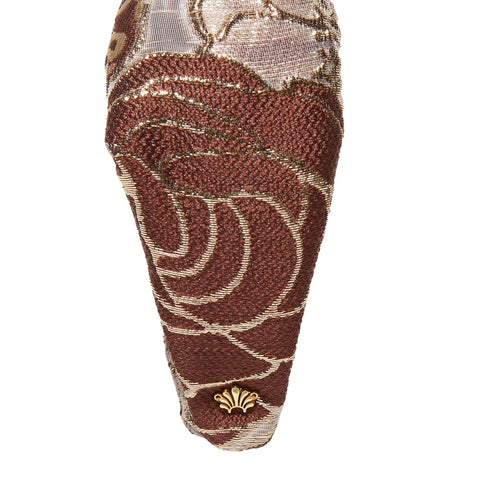 ∙ Plum blush floral jacquard lace with metallic gold accents