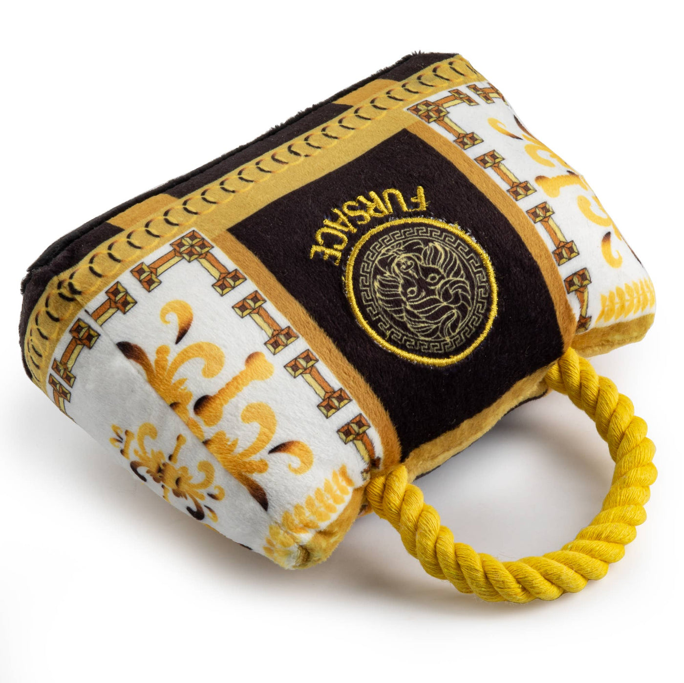 For pooches who embrace the finest in lapdog luxury! Our Fursace Handbag toy has everything your doggie diva dreams of. Whether it’s the divine, timeless styling, the plush fabric providing the perfect chewing consistency, or even the delightful inner squeaker–just one look at this handbag will get your haute hound’s heart beating!