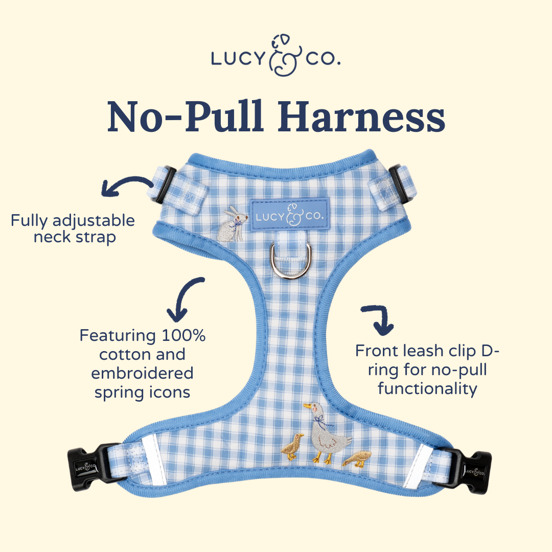 The Silly Goose Embroidered No-Pull Harness is designed for pups who need a little extra guidance on walks. Featuring both front and back leash attachment points, along with fully adjustable neck and chest straps, it’s ideal for leash training and added control. Made with cotton in our signature no-pull harness style, this harness offers extra padding and breathable interior mesh, while still providing flexibility, comfort, and stability for everyday adventures.
