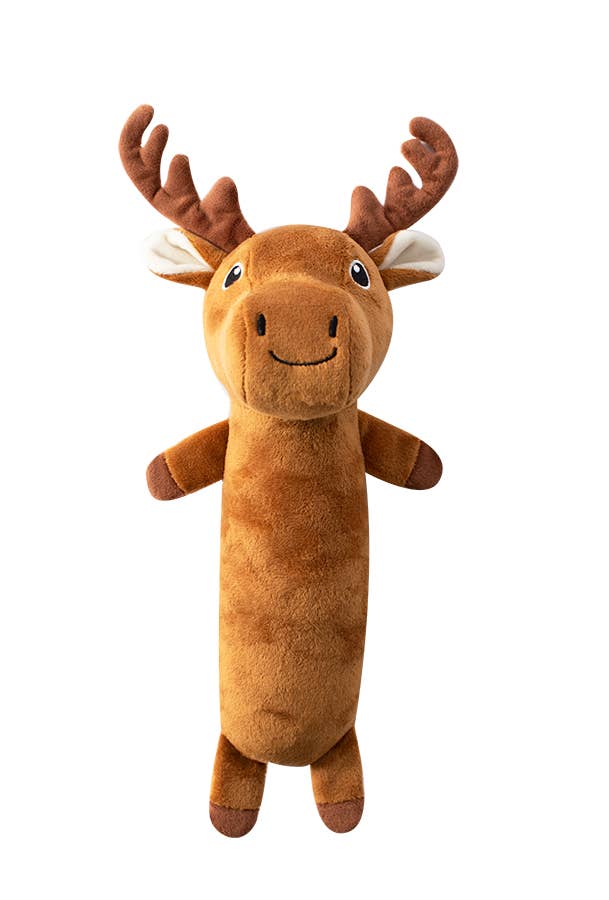 “Easily A’Moose’d” is perfect for playtime, anytime. Made with a super loud squeaker and crazy crinkle paper details, this toy was designed with interactive play in mind.