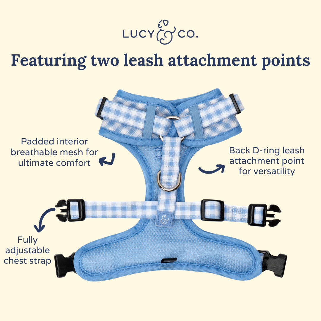 The Silly Goose Embroidered No-Pull Harness is designed for pups who need a little extra guidance on walks. Featuring both front and back leash attachment points, along with fully adjustable neck and chest straps, it’s ideal for leash training and added control. Made with cotton in our signature no-pull harness style, this harness offers extra padding and breathable interior mesh, while still providing flexibility, comfort, and stability for everyday adventures.