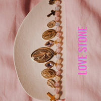 In addition to the Virgin Mary pendants, the necklace features two beautiful diamond-shaped pink zirconia pendants. These gemstones symbolize unconditional love and compassion.