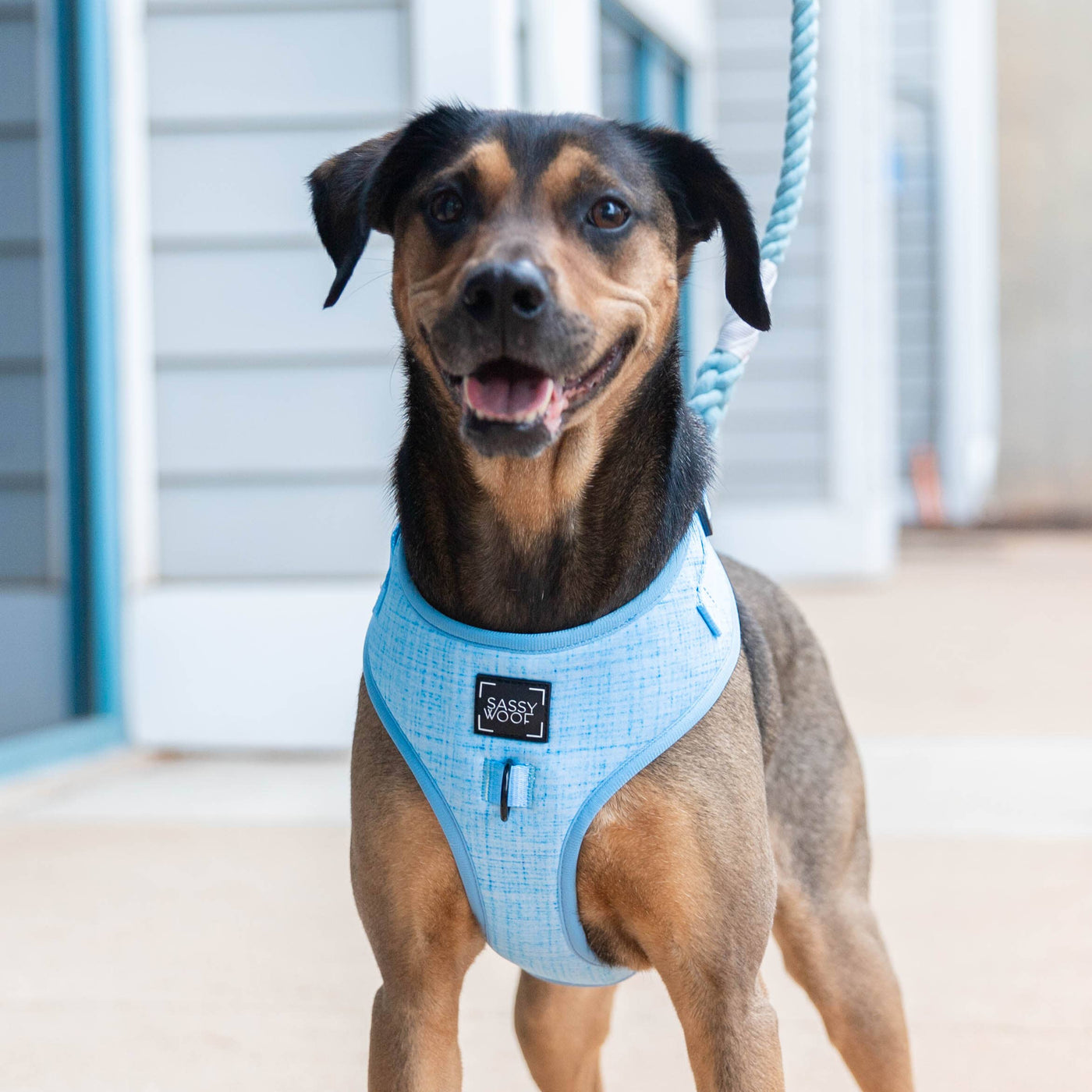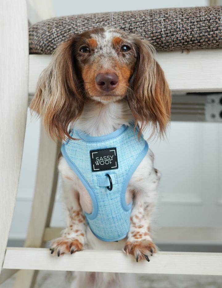 Our 'Blumond' collection is a custom design by Sassy Woof and will make any dog look and feel fabulous. This beautiful design is custom printed on neoprene fabric with breathable mesh. One D-ring on back for leash attachment and another versatile front D-ring that can be used for "no pull" or tags. Our adjustable harnesses are fully adjustable at both the neck and the chest making it the perfect fit!