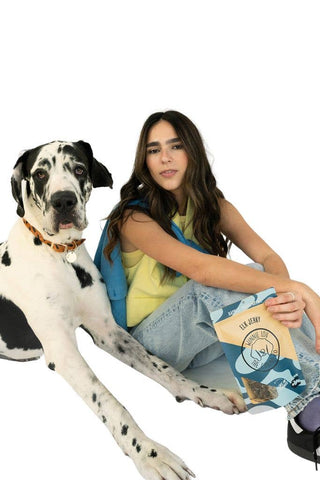 Our newest treat, Elk Jerky with Rosemary & Oregano! So good, our two-legged family members eat them as well. Crafted with over 1/2 pound of grass-fed elk jerky in each bag. We source our elk locally in the midwest. This is a great, lean protein, that rarely are allergens to pups.