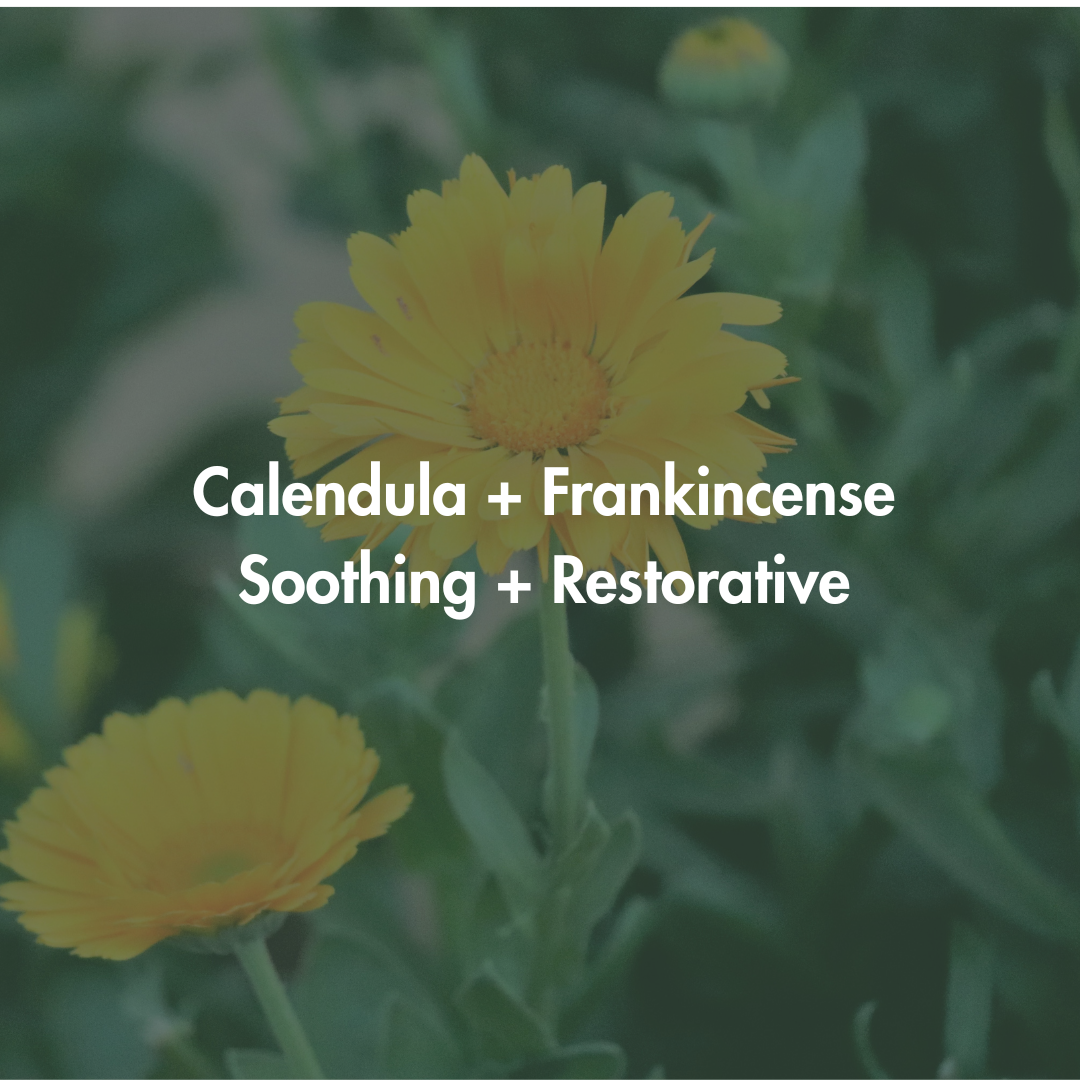 Calming calendula and grounding frankincense—known for their soothing and restorative properties—come together in a scent that nurtures the senses and promotes a sense of ease.