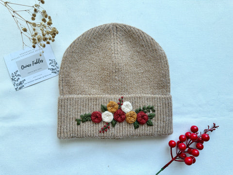 Hand-Embroidered Beanie, Collection Noelle: 2. 3D Roses