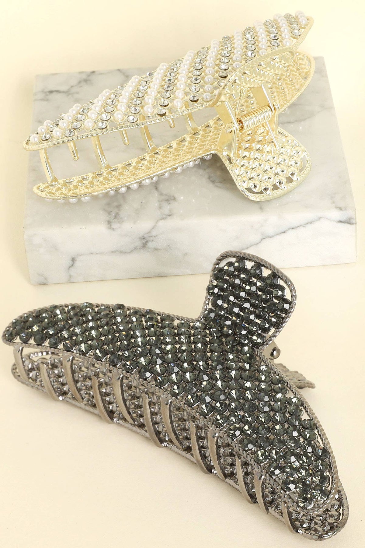 Add a touch of elegance and sparkle to your hairstyle with our Rhinestone Pave Crescent shape Hair Claw Clip. The crescent shape provides a secure hold while the rhinestone pave adds a touch of glamour to any look. Upgrade your hair accessories game with this versatile and stylish clip.