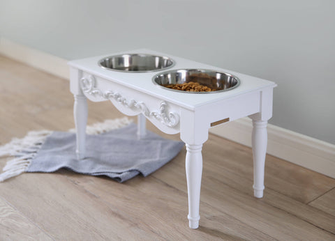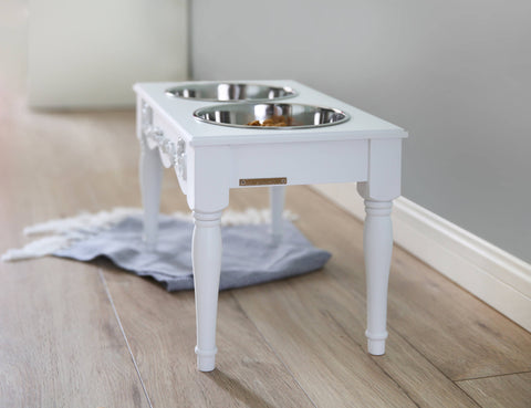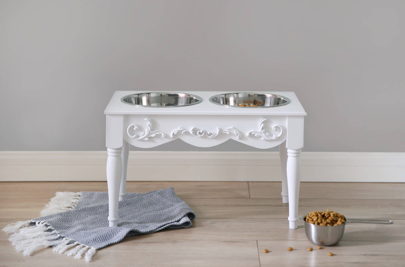 The 10-inch Farmhouse Chic Scrollie elevated pet bowls blend seamlessly into the decor and is designer made with your home in mind. Not only making your house Pinterest perfect, but also making your loved pets feel like they belong. Offered in a height of 10 inches to promote better pet digestion and comfort while eating as well as made with premium materials such as 304 FOOD-GRADE stainless steel bowls. The purchase of every bowl goes towards feeding a homeless pet for 2 weeks and together we can all help get animals off the street, into warm arms and their own collar.
