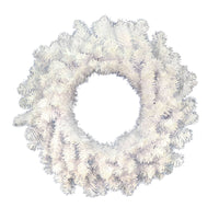 Vickerman 24" Crystal White Spruce Artificial Christmas wreath with 110 PVC tips. Incorporate bright and modern holiday décor into your space with this beautiful white wreath. The white PVC tips feature a glossy finish for an eye-catching effect. A great holiday accent for your front door or mantle, this wreath comes unlit and measures 24" across the diameter from the end of one tip to another.