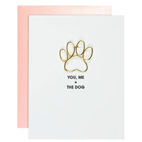 Our "You Me + The Dog" Anniversary Paw Print Paper Clip Card is a letterpress printed on a vintage printing press.